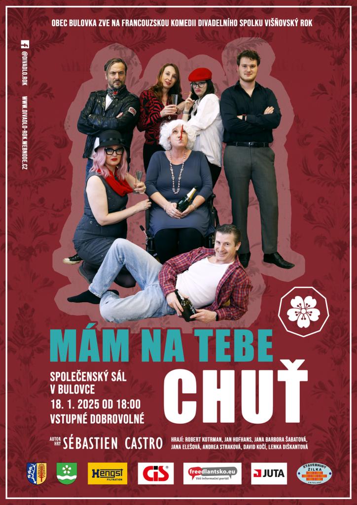 Divadelní spolek Višňovský rok Vás zve na francouzskou komedii, která se koná v sobotu 18.1.2025 od 18:00hod ve společenském sále v Bulovce