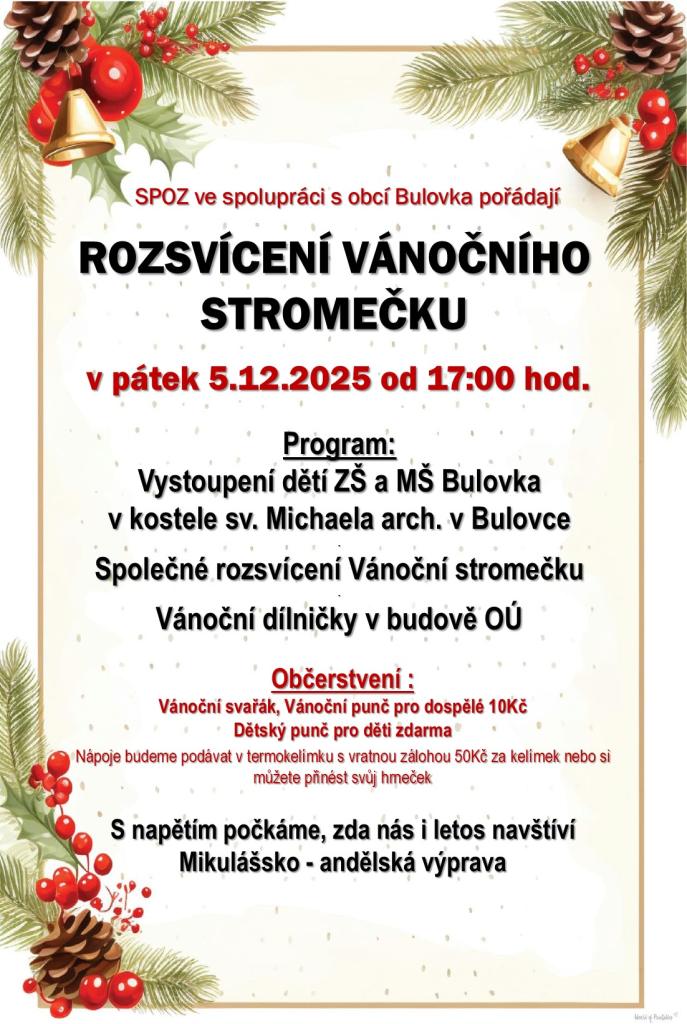 V pátek 5. prosince 2025 rozsvítíme Vánoční stromeček a zahájíme adventní čas.