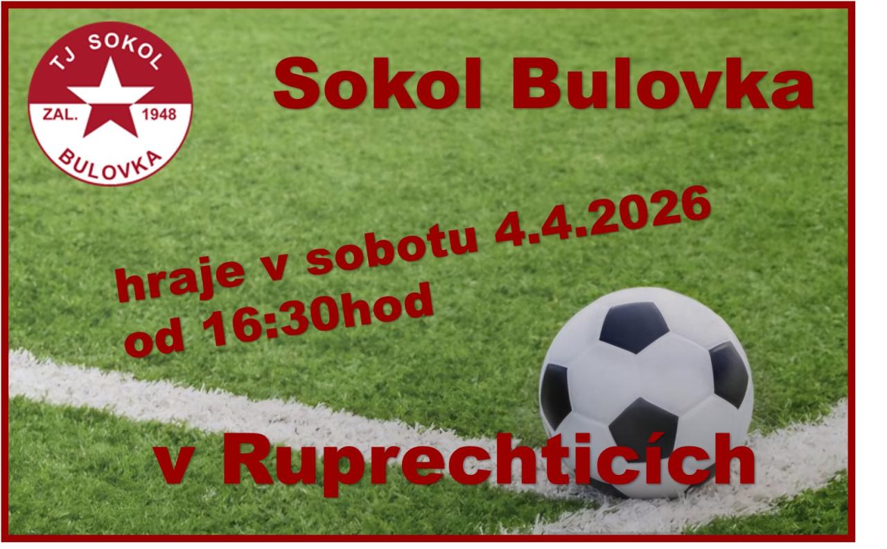Sokol Bulovka hraje 4.4.2026 od 16:30hod. v Ruprechticích
