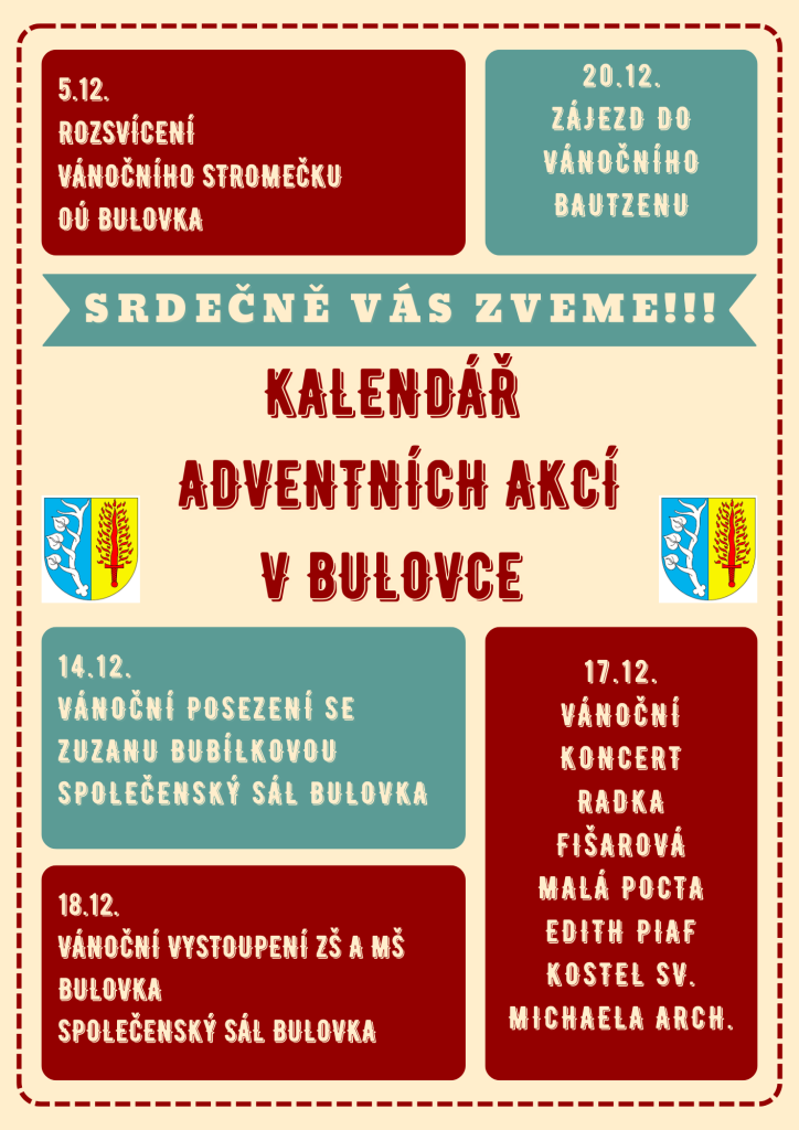 V naší obci se blíží období adventu, které je spojeno s mnoha tradičními akcemi. Připravili jsme pro vás přehled adventních událostí, které se uskuteční od začátku prosince. Můžete se těšit na vánoční trhy, koncerty, a další aktivity, které obohatí vánoční atmosféru. Věříme, že si každý najde něco, co ho potěší a přinese radost v tomto krásném čase.