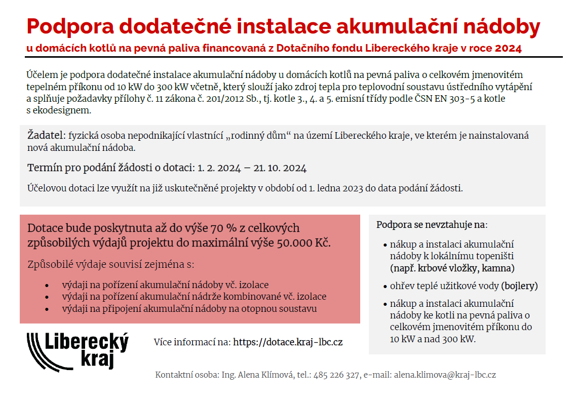 Podpora dodatečné instalace akumulační nádoby u domácích kotlů na pevná paliva financovaná z Dotačního fondu Libereckého kraje v roce 2024